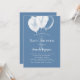 Dusty blue bakgrund, dekorerad med vita ballonger. Anpassa och lägg till information om namn och party. Baksida: dammig blå bakgrund.