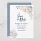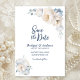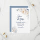 Informera dina vänner och nära och kära om ditt kommande bröllop med den här eleganten dammiga blå och vita blommigten bröllop spara-date. Med anpassadet kan du enkelt lägga till de uppgifter som behövs. Det finns en mängd olika pappra typer och stilar i hörnet för dina unika inbjudningar, tillsammans med möjligheten att ladda ned om du föredrar ett digitalt format.