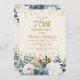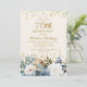 Dusty Blue White Blommigt Guld 70:e födelsedagen Inbjudningar