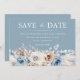 Dusty Blue & White Bohemian Blommigt Modern Bröllo Spara Datumet