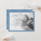 Dusty blue med en propp av blommigtar på baksidan, det här sparar datumfotokortet som perfekt för ett dammigt blått botaniskt temat bröllop. Använda den enkla mallen för att redigera texten och lägga till fotot. Se till att kolla in EmmyINK:s affär för samordning av dammig, blå botanik bröllop stationär och decor!