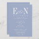 Dusty Blue & White Elegant bröllop. Elegant vit text på dammig blå bakgrund. Har en fantastisk anpassade brud och groom monogram initialer med mellanhand. Anpassa med texten i Monogram initialer och bröllop. Vi inbjudan besöker vår Zazzle-butik, GJ Design Co, för att visa matchande produkter