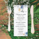 Dusty Blue White Guld Blommigt Bröllop Meny
