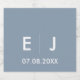 Elegant klassisk monogrammad bröllop i dammig blå och vit med initialer och bröllop i traditionell minimalistisk text.