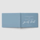 Denna dammiga blåa gäst bok utstrålar lugn för ett sommarkust vid bröllop vid havet. Anpassa den här lätta grått-blåa gästboken med elegant-minimalistisk vit typografi för att matcha ditt system med serene möhippa färg.