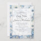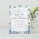Dusty Blue White Watercolor Blommigt Bröllop Inbjudningar