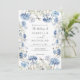 Denna dammiga blåblommiga bröllopsinbjudan är perfektens blandning av rustik charm och modern elegans. Med ömtåliga vildblommor i mjuka dammiga blåtoner, arrangerade i en romantisk ram kring elegantens kalligrafi, anger den här inbjudan tonen för en snyggt boho eller trädgårdsbröllop. Perfekt för par att planera en utomhusceremoni, en rustik eller naturinspirerad firande. Fullt anpassade till kostym din speciella dag. 🌸 🌿