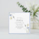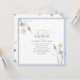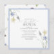 Modern, elegant fyrkantig inbjudningskort för möhippan med ömtåliga, dammiga, blå och vita, vattenfärgade vilda blommor. Anpassa din möhippa i mjuk, svart och accentuerad med vacker, modern, handskriven kalligrafi. Kontaktdesigner för matchande produkter. Copyright Anastasia Surridge for Elegant Inbjudan, alla höger reserverade sig.