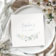 Elegantens känsliga vildblomskonstruktion för vattenfärger med modernt skript. Pastellpaletter av mjuk gult, benvit, grönt, dammblått och botaniskt grönt, enkelt och romantiskt. Underbar för det moderna party, boho land trädgårdsbröllop party i vår och sommar. Visa alla matchande delar i samlingen.