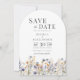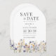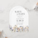 Dusty Blue Wildblommor Bröllop Arch Spara datum Inbjudningar