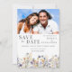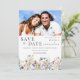 Dusty Blue Wildblommor Elegant Two Photo Bröllop Spara Datumet