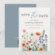 Announce your wedding date with timeless elegance using this Elegant Floral Script Wedding Save the Date in dusty blue with delicate wildflowers. This refined design features a soft watercolor wildflower illustration paired with graceful script calligraphy and classic serif typography on an off-white background, blending romantic botanical charm with modern sophistication.