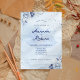 Fira din speciella dag med den här eleganten dammiga blåbröllop, med mjuka blommigtar och romantiska blommor. Utformningen kombinerar modern minimalism med botaniskt bedövningsmedel under vintern, perfekt för vinterbröllop, trädgårdsceremonier eller firande på coola. Den här inbjudan är perfekt för par som kärlek är ett tidlöst och sofistikerat tema för blommigt, och den tillför lite respit till din bröllop-station. Fullständigt anpassade för namn, datum, plats med mera.