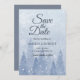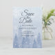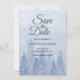 En "rädda datumet" med en drömmande vinterscen där gräs träd och snöflingor tonas ned i vackra skuggor av dammblått. Mesmeriera dina gäster med detta vackra snöslandskap. Likaså finns matchande bröllopsinbjudan och andra viktiga bröllop.