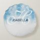 Dusty Blue Winter Script Calligraphy Monogram Round Pillow | Bästa gåva till henne