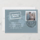 Dusty Blue World Map Destination Wedding Photo sparar datumet inbjudan