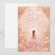 This elegant quinceañera design features a soft dusty blush watercolor background framed by romantic roses, delicate florals, and refined gold accents, with a graceful gown illustration creating a warm, dreamy atmosphere. The muted pink palette and floral detailing give the design a luxurious yet youthful feel, making it perfect for a classic quinceañera celebration with a romantic garden-inspired aesthetic.