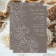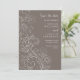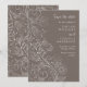 Elegant bröllop sparar datumkortet med en delikat blommigt för prydnadsmönster med blommor, fåglar och löv på en dammig brun grått-bakgrund. Texten kombinerar handskript och serif typsnitt för en snyggt och ett modernt utseende. Perfekt för vinter- eller höstfallbröllop.