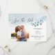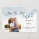 Eleganten sparar datumkortet med anpassningsbar foto, eucalyptus löv, handskrift och tvätta vattenfärg. Den här delikata designen har vattenfärgsgrei och löv i nyanser av dammigt blått grått och grönt. Spara datumet i ett vackert kalligrafi och mallen är inställd för att du ska kunna anpassa den. En naturlig, rustik design som inte är blommigt och som passar en mängd teman från klassisk trädgård till ekologisk boho och ett modernt minimum. Bläddra i min butik i dammiga eucalyptus-samlingen för att samordna inbjudningar, djurutrymmeskort och sändningstillbehör.