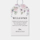 Elegant: blommigt av rosa, blått, vitt och grönt, märkre för bröllop-välkomna presentsäckar. Anpassa och anpassa teckensnittet stil, färg och storlekt.