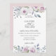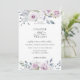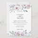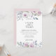 Elegant blommor i vattenfärgsträdor och löv i dammiga nyanser av rosa, violett, daghem, blått och grönt, bröllopsinbjudan. Kortets baksida har en solid rosa färg.
