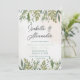Den naturinspirerade bröllopsinbjudan innehåller mjuka dammiga gröntar och elegantens vattenfärgsblad. Perfekt för utomhusbruk, trädgård eller miljömedvetet bröllop ger en ny, verklig känsla för firande samtidigt som den tillför ett inslag av naturlig elegans.