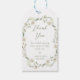 Lägg dig i vår tidlösa chic och ömtåliga botaniska vår/sommar-tack-tack-er-bröllop-taggar. De här märkrna är utrustade med en utsökt krans av vita blommor (elegant och ro) som är sammanflätade med grönt löv och höjer dina bröllopsfavoriter med en liten förfining. Perfekt för att lägga till romantik till din bohemiska bröllop firande.