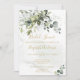 Dina gäster kommer att kärlek denna dammiga grönt eucalyptus-löv, elegant guld och en vattenfärgad bakgrund inbjudningskort för möhippan.