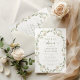 Detta botaniska temat bohemiskt inbjudningskort för möhippan, som har raffinerats på ett elegant sätt, visar en känslig krans av vita blommor och grönaktiga löv. Inbjudan läggs till med modern kalligrafitext i sofistikerade dammiga gröntar och skapar en tidlös och elegant design. Perfekt för att ange tonen för ett minnesvärt vår eller sommar-firande.