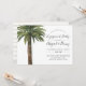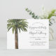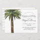 En inbjudan till förlovningsfest från stranden inspirerade till en vattenfärgsbild av en enda dammig handflatan träd. På sidan av det finns era unika uppgifter om party. På motsatt sida finns sann brun rand som komplement till inbjudningens framsida.