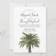 En inbjudan till bröllopsfest från en strand som innehåller en vattenfärgsbild av en enda kustnära handflatan träd. Ovanför det är din unika party- eller händelseinformation. På baksidan finns en sandbrun färg som kompletterar framsidan.