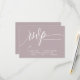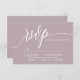 Låt kärlek blomstra med en aning enkelhet i eleganten. Den här dammiga lavender lila-OSA kort har ett modernt calligraphy-skriptteckensnitt, vilket gör att du kan lägga till en liten tidlös respit till bröllop-skrivbordet. De minimalistiska behållorna fokuserar på OSAN och säkerställer en tydlig och snyggt respons från dina gäster. Som ett perfekt komplement till ert minimalistiska bröllop-tema blandas denna mångsidiga OSA kort helt enkelt med romantisk, chic, modern eller sofistikerad estetik. Anpassa den med information om namn och bröllop för att skapa en sammanhängande responssvit för din speciella dag.