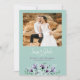 Det här kortet för lila och grönt blommigt bröllop spara datum är så romantiskt. Den rikliga vattenfärgen bouquet är en perfekt som är knuten till ditt favoritfoto. QR-koden gör det enkelt för gästerna att få information om din speciella dag