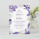 De här bröllopsinbjudningarna har lila vattenfärgsblommor och vita daisy. Anpassa dem med texten. Matchande bröllop-kontorsmaterial finns också.
