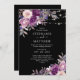 Dessa bröllopsinbjudningar har en modern botanisk blommigt med vattenfärg, med dammig, lila, blommor, bär, löv, blad och snöre på svart ljus. Anpassa med texten. Matchande kontorsmaterial är också tillgängligt.