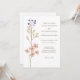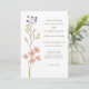 De här bröllopsinbjudningarna har ett rent och enkelt modernt utseende med illustrationer av blommor i mjuk rosa eller persiko- och dammig lila på den lämnat sidan och alla dina bröllop-detaljer på högerna i mjuka bruna bokstäver i elegant.