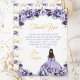 Den här eleganten och det glamorösa Quinceañera-kortet har en vacker prinsessa med mörk hår i en dammig lila boll gown. Texten kombinerar handskript och modernt sans serif typsnitt för ett klassligt och sofistikerat utseende. Blommigten och guld-konetti skapar perfekten blandning av rustik och chic. Grafik efter www.etsy.com/uk/shop/SunflowerDayLove