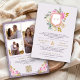 Dusty Lila Rosa Blommigt QR Code Vapensköld Bröllo Inbjudningar