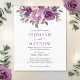 Dessa bröllopsinbjudningar har en modern botanisk blommigt med vattenfärg med dammig, lila, blommor, bär, löv och löv. Anpassa med texten. Matchande kontorsmaterial är också tillgängligt.