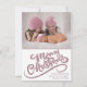 Ett enkelt och minimalt modernt bildstoryboard-kort med elegant "God jul"-skript och Jultomten ansikte med mall för din favoritfamilj porträtt och anpassningsbar hälsning.
