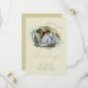 Belysning av mjuk och mjuk gult med grått och sage text - "hon sade ja" i handskriven kalligrafi. Spara datum - två skuggor av goldenrod gult, lite mörkare på baksidan, accentuerar vårt penseldragfoto ram - omgivet av ömtålig eucalyptus-löv från silver-dollarn. Berätta för dina gäster att du är gifta sig - och för att behålla ditt speciella datum öppet
