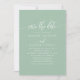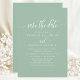 Den här minimalisten sparar datumkortet med vackra dammiga mint-nyanser parade med kalligrafiskript för elegant. Med en modern och enkel utformning är detta mångsidiga kort perfekt för vilken säsong som helst - vår, sommar, vinter eller fall. Det utesluter en snyggt- och klassvib, perfekt för ett romantiskt, chic- eller sofistikerat bröllop-tema.