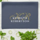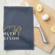 Dusty Navy Blue Monogram Minimalist Gold White Men Kökshandduk