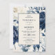 Blyinbjudan till bröllopsinbjudan till Dusty Navy Blue & white blommigt