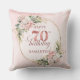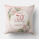 Celebrate 70 years in style with this shimmering rose gold pillow. Featuring dusty pink, blush pink, and light pink watercolor flowers, lush greenery, eucalyptus accents, and a gold frame, this boho, floral, and bohemian design makes a perfect gift for a 70th birthday pillow.