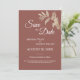 Denna Dusty Ro Autumn Boho bröllop spara datum kombinerar ett antiskt vibe med ett romskt utseende. Eleganten, jaktblommor från neutralten ovanpå dammen i ro, mauvbakgrunden, med dess klassiska kalligrafi-typografi, möjliggör ett formellt tema, men vild och blommigt, vintage giftermål stil.