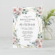 Boho Dusty Rosa Blommigt Ro och Eucalyptus Watercolor Greenery Inbjudningskort för möhippan... Vår blommigt inbjudningskort för möhippan har dammiga rosa ros och eukalyptus gröna arrangemang på ett guld-metallfolie geometriskt ram som gränsar till personligens inbjudningstext. All exempeltext kan enkelt revideras med egen information om anpassningsmallen.
