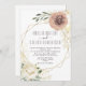 Romantisk dammig ro och bröllopsinbjudan till elfenbensjuka blommigtar med guld-geometriskt ram och spola gröna accenter. Denna elegant botaniska utformning är perfekt för en boho-trädgård, vinodling eller vår/sommar-firande. Bekvämt mjuk och tidlös för par som kärlek blommigt detaljerar med en modern manusvinter. Anpassa alla formuleringar och par med matchande kontorsmaterial för ett sammanhängande utseende.