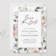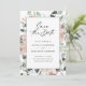 Dusty Ro Blommigt Eucalyptus Modern Calligraphy Bröllop spara datum... Vår romantiska blommigt Spara datumkortet har en arrangemang av lush dammig rosa ros och eukalyptus greenergiy som sätter in bröllop spara datum-texten i modern kalligrafi och elegant serif-typografi. Kortets baksida innehåller webbplatsinformationen för bröllop och ett exempel på QR-kodgrafik som du kan ersätta genom att helt enkelt ange din egen webbadress för bröllop på mallen. All exempeltext på båda sidor av kortet (förutom textbilden Spara datum) kan enkelt revideras med egna uppgifter om anpassningsmallen.