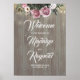 Välkomstskylt för Dusty ro blommigt land bröllop